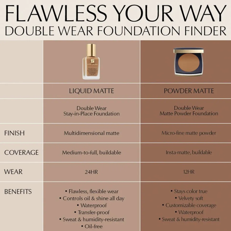 Estée Lauders Dual Fusion Process forener blødgørere med pigmenter for at skabe denne effektive, mikrofine pudderfoundation med en fløjlsblød konsistens, der føles vægtløs og ultrakomfortabel på huden. Den giver alsidig dækning, mens den er vandfast, svedresistent og fugtbestandig. Den kommer med en tosidet applikator, som sikrer muligheden for at opbygge dækning efter behov med denne medium-til-heldækkende pudderfoundation.