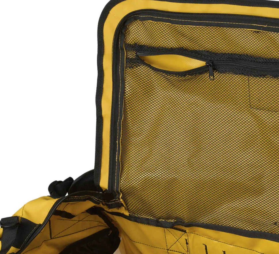 Tasken har håndtag i siderne og har remme så man kan tage tasken på ryggen. Remmene er syet fast med en kraftig tråd så den kan holde til mere. Den vandtætte top/låg dækker over lynlåsen og hplder vandet ude. Tasken kommer i 3 farver, gul, army grøn og sort. Og kommer i 3 forskellige størrelser Small er på 45Liter, Medium er 65 Liter og Large er på 85 Liter.