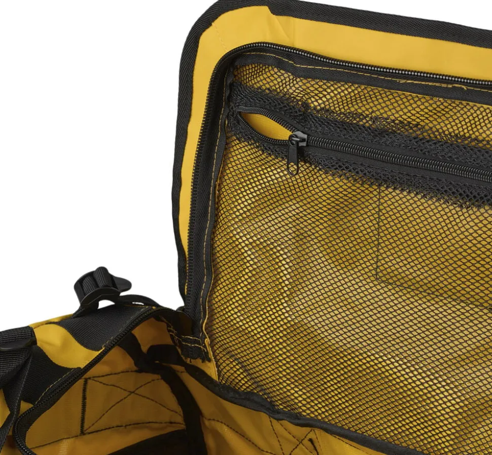 Tasken har håndtag i siderne og har remme så man kan tage tasken på ryggen. Remmene er syet fast med en kraftig tråd så den kan holde til mere. Den vandtætte top/låg dækker over lynlåsen og hplder vandet ude. Tasken kommer i 3 farver, gul, army grøn og sort. Og kommer i 3 forskellige størrelser Small er på 45Liter, Medium er 65 Liter og Large er på 85 Liter.