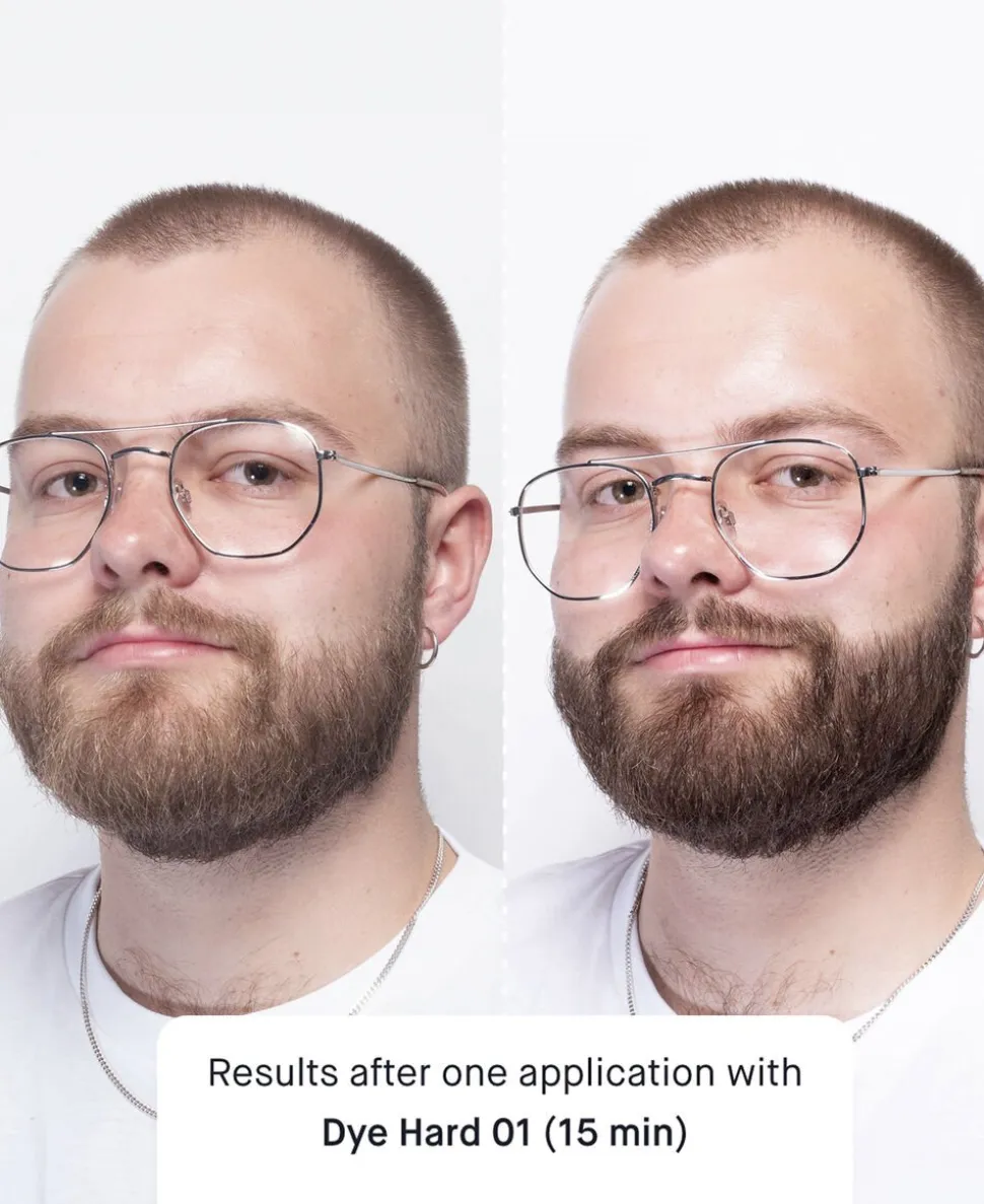 Dye Hard 01 er en del af en skægfarve-serie formuleret med argan olie. Serien består af 2 nuancer, der passer til alle skægfarver. Skægfarverne er specielt designet til sensitiv hud og giver øjeblikkelig og ensartet dækning et par nuancer mørkere end dit udgangspunkt. De er fremstillet UDEN stærkt irriterende ingrediesner som ammoniak, parabener, silikoner eller PPD.
