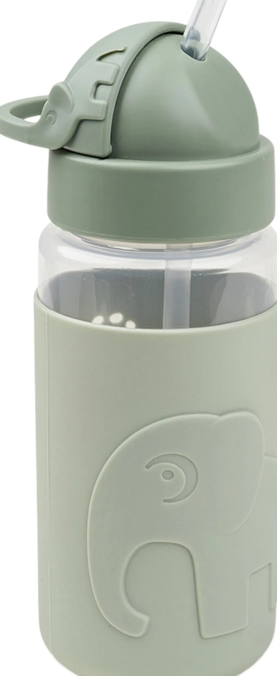 Den søde drikkedunk med sugerør og et easy-grip omslag passer perfekt i ungernes rygsæk. Drikkeflasken har et smart sugerør, der kan gemmes i låget og forhindrer at væske spildes. Håndtaget hjælper de små hænder til at finde sugerøret frem igen. Den spildfrie børne-drikkeflaske er uundværlig på farten og gør det sjovt for barnet at drikke masser af vand. Silikone-omslaget sikrer et godt greb og et ekstra sugerør samt mundstykke er inkluderet. Silikone-omslaget er præget med Elphee og grønne toner pryder vandflasken.