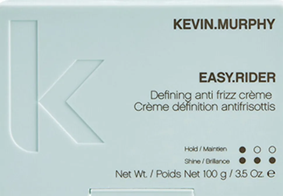EASY. RIDER fra KEVIN. MURPHY fjerner krus og aktiverer krøl med ekstra vitaminer og mineraler. Med fleksibelt hold, perfekt til krøller. Indeholder Grøn Te som er en styrkende antioxidant, Tangerinolie som forsegler skællaget og beskytter mod stress, og Biotin som forebygger hårtab og giver en sund hovedbund.