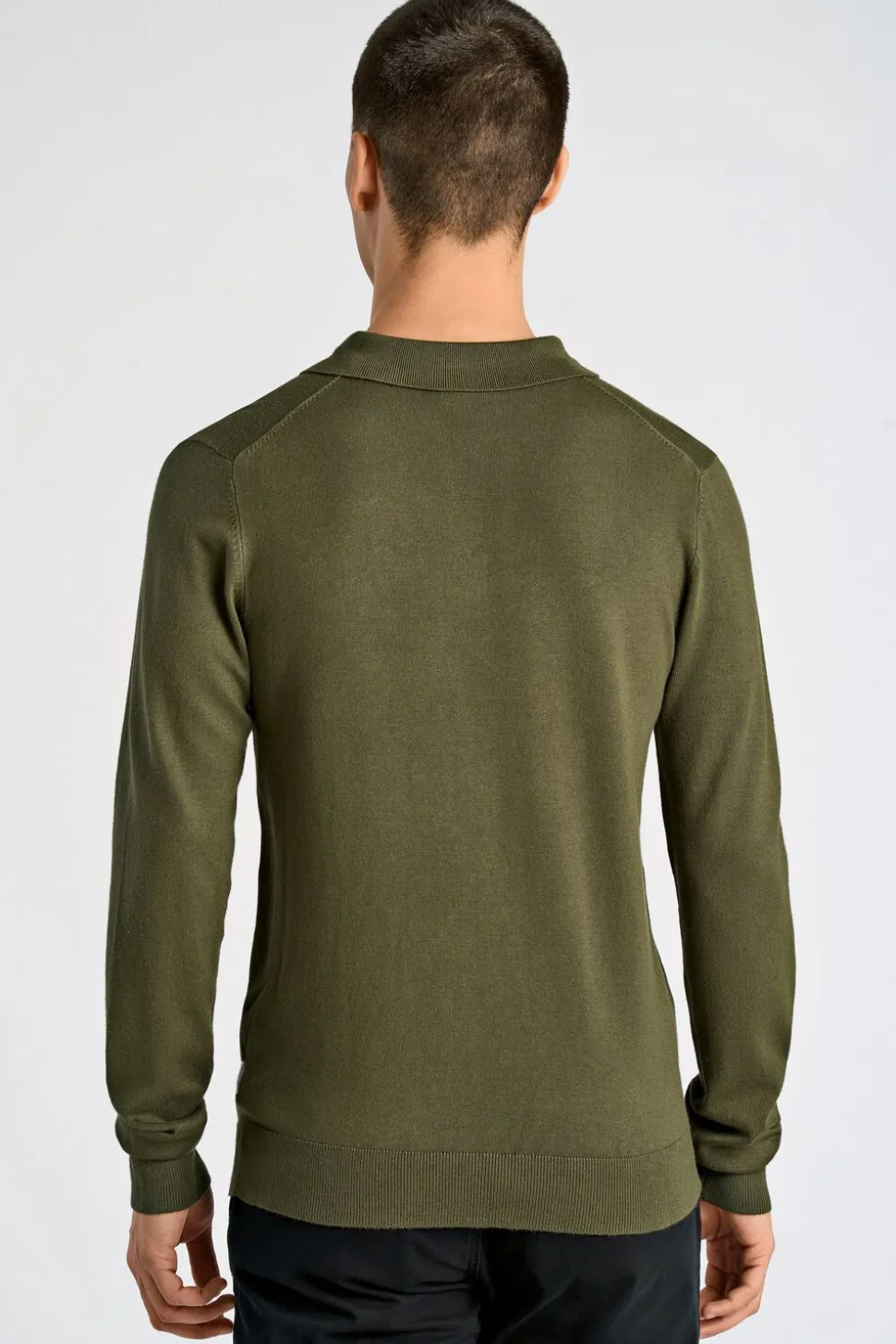 Langærmet, strikket polotrøje i blød kvalitet. Trøjen har tre knapper i halsen og almindelig krave. Diskret, broderet logo på venstre bryst.