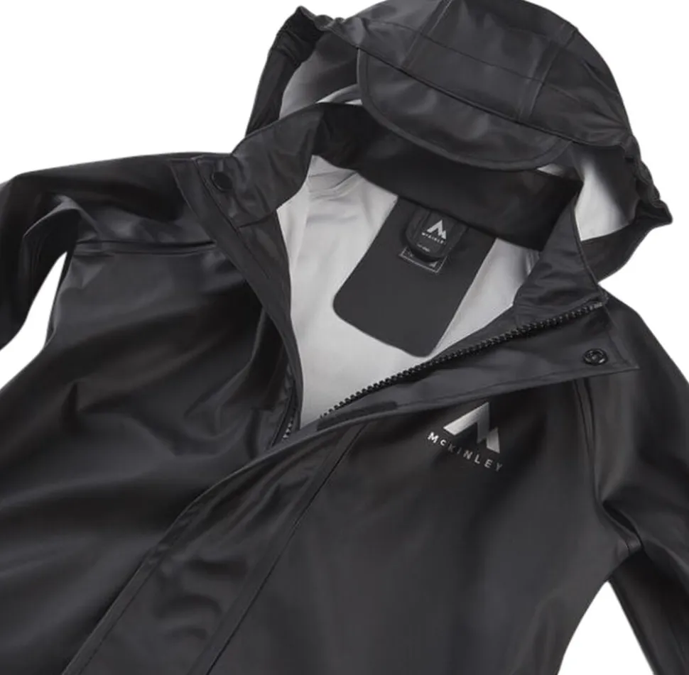 Til alle udendørsaktiviteter i vind og vejr, er McKINLEYs Eddie II regnsæt en fantastisk go-to kombination bestående af jakke og buks. Sættet kommer med elastikkanter omkring håndled og fødder, aftagelige hætte og justerbare steler monteret på bukserne, for en tæt og afvisende pasform, der holder elementerne på ydersiden. Sættet fuldendes med reflekterende detaljer der øger synligeden.