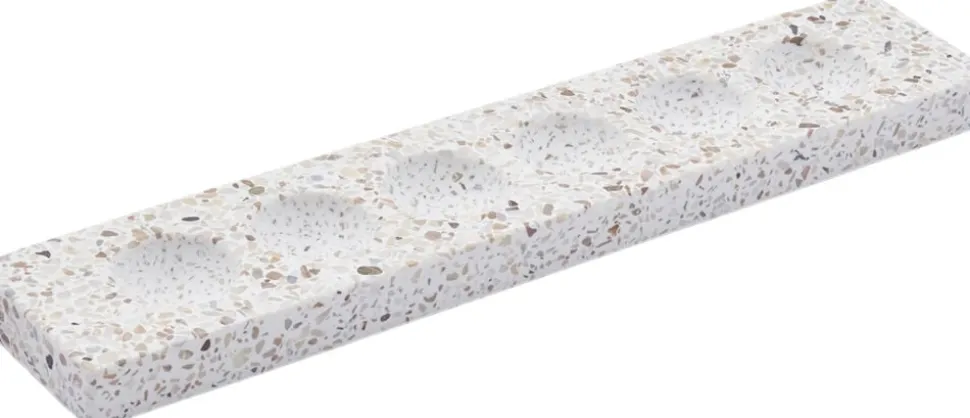 TERRAZZO ÆGGEBAKKE 32 x 6,5 x 2 cm Terrazzo Præsenter dine æg med stil. Med Humdakins æggebakke kan du opbevare dine æg i køleskabet eller vise dem smukt frem på morgenbordet. Æggebakken kan indeholde 6 æg.Mix med de andre varer fra vores Terrazzo kollektion.Pleje- Tør af med varmt vand. Undlad at bruge rengøringsmidler, der indeholder syrer, eddike og affedtende rengøringsmidler.