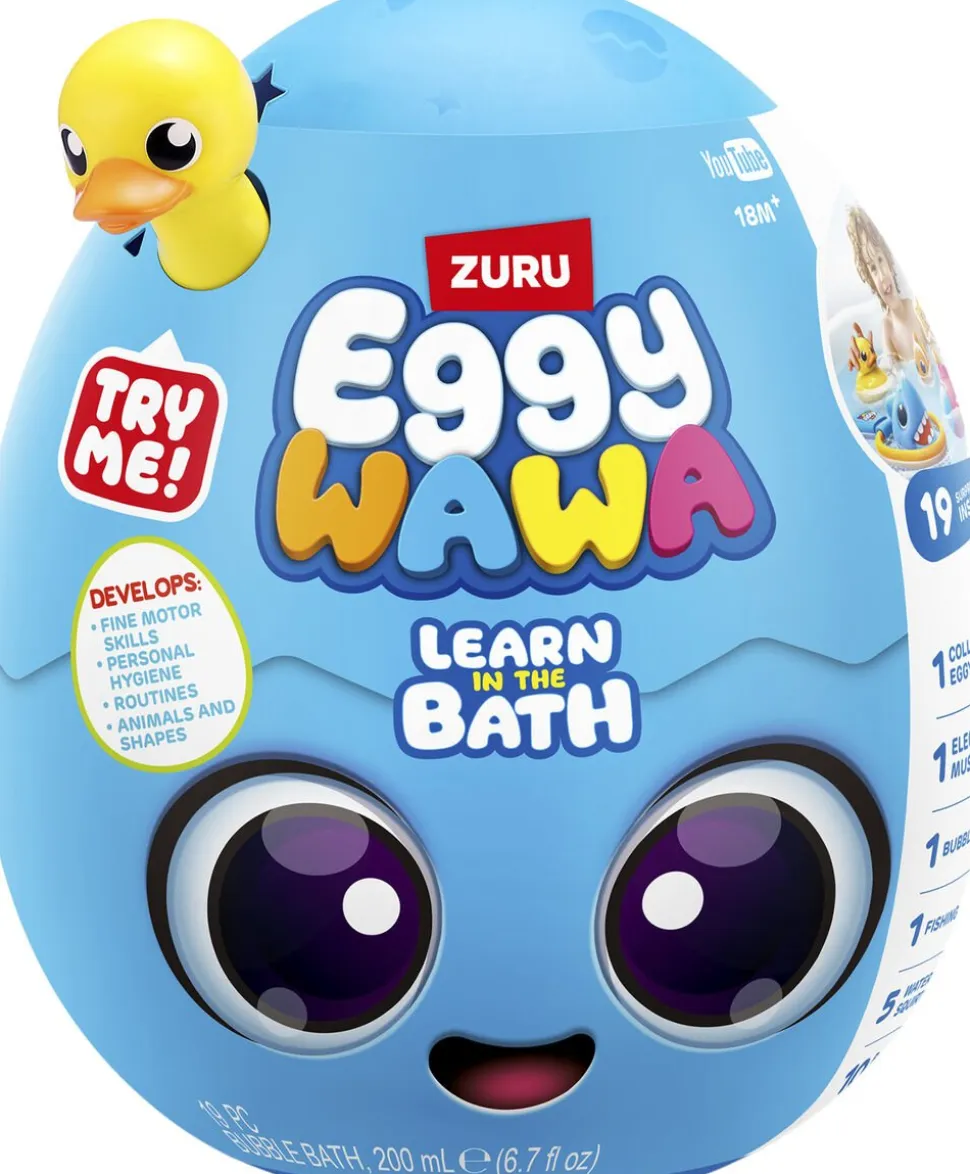 Så mange måder at lære og lege med Eggy Wawa Badetiden har aldrig været så æggende Udklæk dit badeæg, og brug fiskenet, skumklistermærker og badevandpistoler ti l at hjælpe dit lille barn med at udvikle nye motoriske færdigheder Det er sjovere end før at lære nye færdigheder ved hjælp af musik og det venlige ansigt på E ggy Wawa
