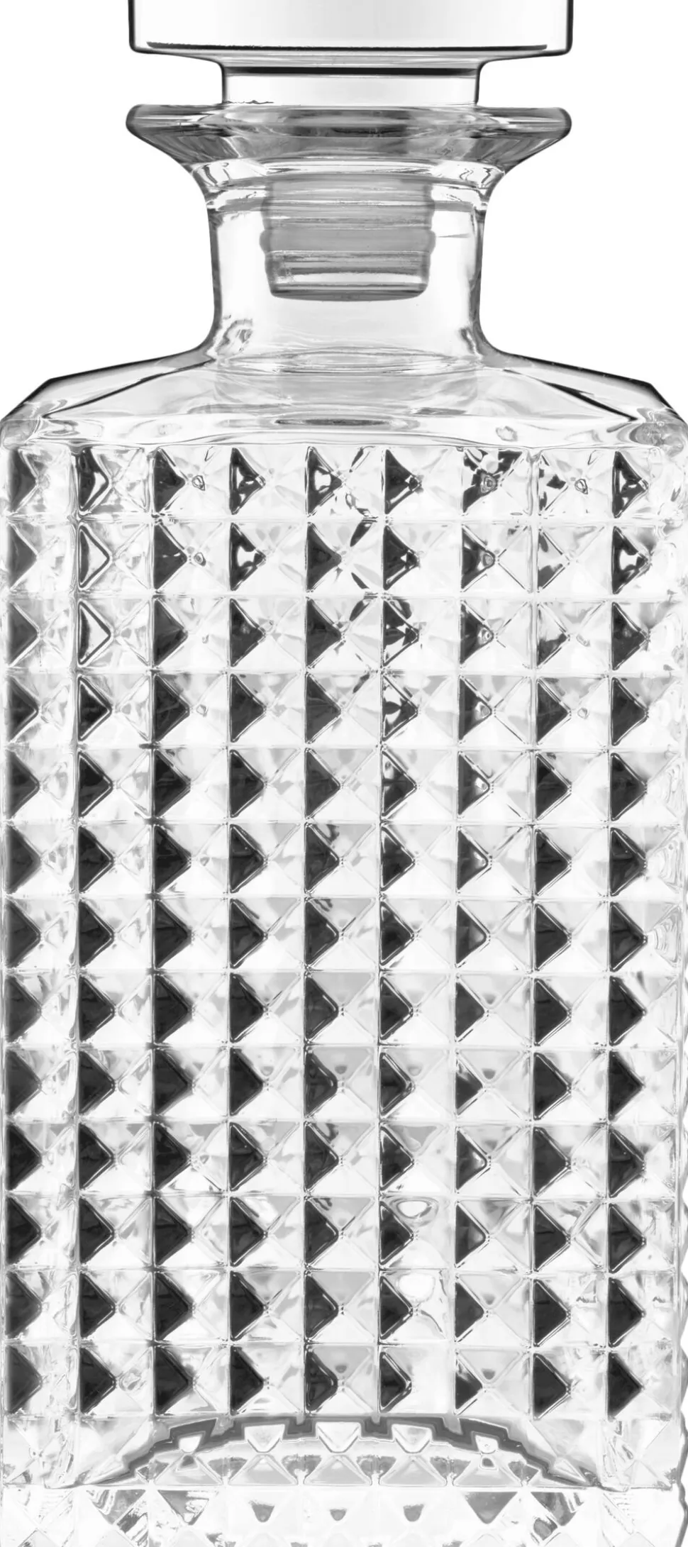 Smuk kvadratisk karaffel med præget mønster. En fin og klassisk karaffel til hjemme baren. Mixology serien fra italienske Luigi Bormioli, er designet i samarbejde med chefbartenderen Yuri Gelmini fra Milano. Alt Luigi Bormioli glas tåler maskinopvask ved max 55° C. Leveres i gaveæske. 2 års garanti.