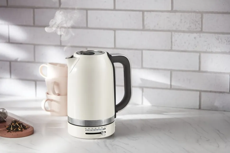 KitchenAid Elkedel er en elegant og funktionel elkedel i farven Porcelain White, designet til at imødekomme dine behov i køkkenet. Denne elkedel har en kapacitet på 1,7 liter, hvilket gør den ideel til både daglig brug og når du har gæster. Elkedlen er udstyret med temperaturkontrol, der giver dig mulighed for at indstille vandtemperaturen fra 50 til 100 grader, så du kan tilberede din te eller kaffe præcist som du ønsker det. Den opretstående model sikrer, at elkedlen er nem at bruge og opbevare. KitchenAid Elkedel er ikke kun praktisk, men også stilfuld, hvilket gør den til et attraktivt element i dit køkken. Den er designet med fokus på brugervenlighed og funktionalitet, hvilket gør det nemt at koge vand hurtigt og effektivt. Elkedlen har en 2-års garanti, hvilket giver dig tryghed i dit køb. Uanset om du er en te- eller kaffeelsker, vil denne elkedel være et værdifuldt redskab i dit køkken. Den kombinerer moderne teknologi med et tidløst design, der passer ind i enhver indretning. Oplev den perfekte balance mellem stil og funktionalitet med KitchenAid Elkedel, der er ideel til både hverdag og særlige lejligheder.