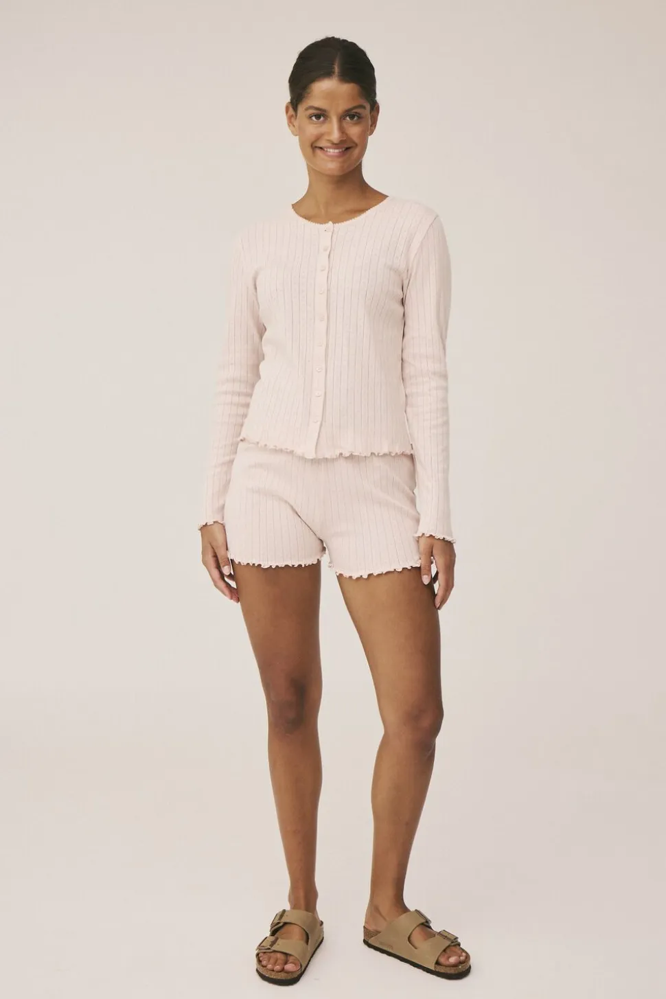 Cardigan fra Magasin du Nord Collection i den blødeste kvalitet af 100% økologisk bomuld med GOTS-certificering. Cardiganen har det fineste pointellemønster, der giver materialet et let, luftigt og dekorativt udtryk. Derudover har cardiganen lange ærmer, blondekant i den runde halsudskæring samt elegante bølgekanter. En skøn cardigan i den lækreste kvalitet.