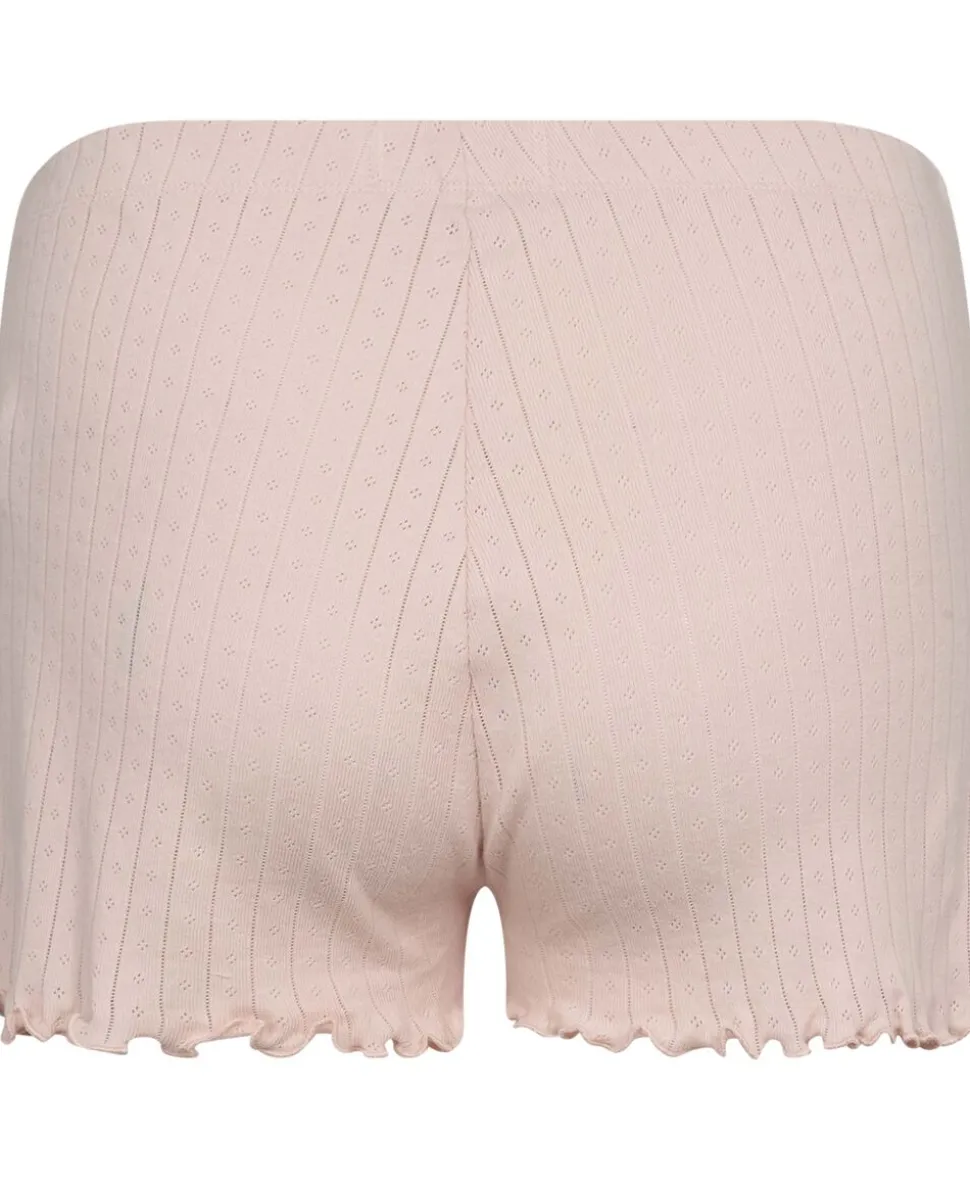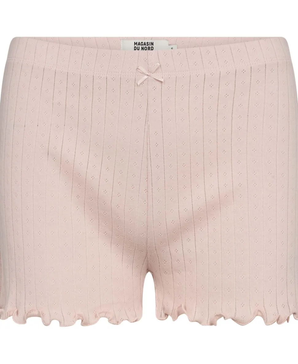Shorts fra Magasin du Nord Collection i den blødeste kvalitet af 100% økologisk bomuld med GOTS-certificering. Shortsene er enkle i modellen med det fineste hulmønster, sløjfedetalje, bølgekant i bunden samt en smal elastik i taljen. Et par komfortable shorts i den lækreste kvalitet.