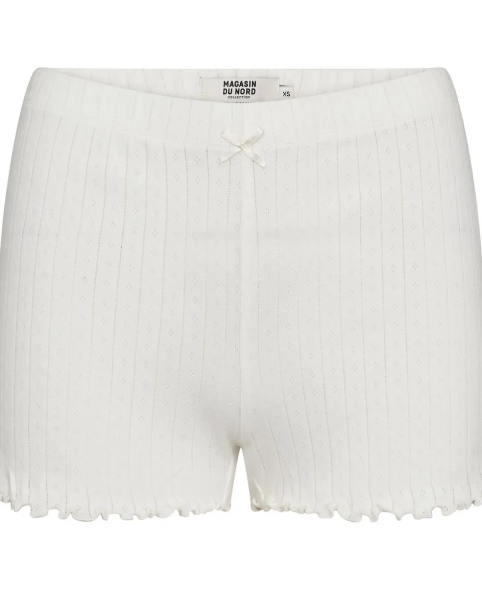 Shorts fra Magasin du Nord Collection i den blødeste kvalitet af 100% økologisk bomuld med GOTS-certificering. Shortsene er enkle i modellen med det fineste blondemønster, blomsterprint, sløjfedetalje, bølgekant i bunden samt en smal elastik i taljen. Et par komfortable shorts i den lækreste kvalitet.