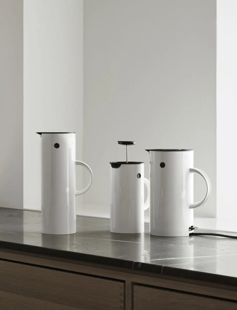 Erik Magnussens klassiske termokande EM77 har prydet kaffeborde verden rundt i over 40 år, og nu introduceres et helt nyt medlem af EM familien: EM77 elkedlen i stål. Den tilfører køkkenet et stilrent udtryk, og funktionelt komplementerer den både EM77 stempelkanden og EM77 termokanden. Elkedelen kan rumme op til 1,5 l. , og koger vandet hurtigt på et minimum af energi. EM77 Kedlen er udstyrret med et kalkfilter, og er ledningsfri, så den kan tages med på bordet.