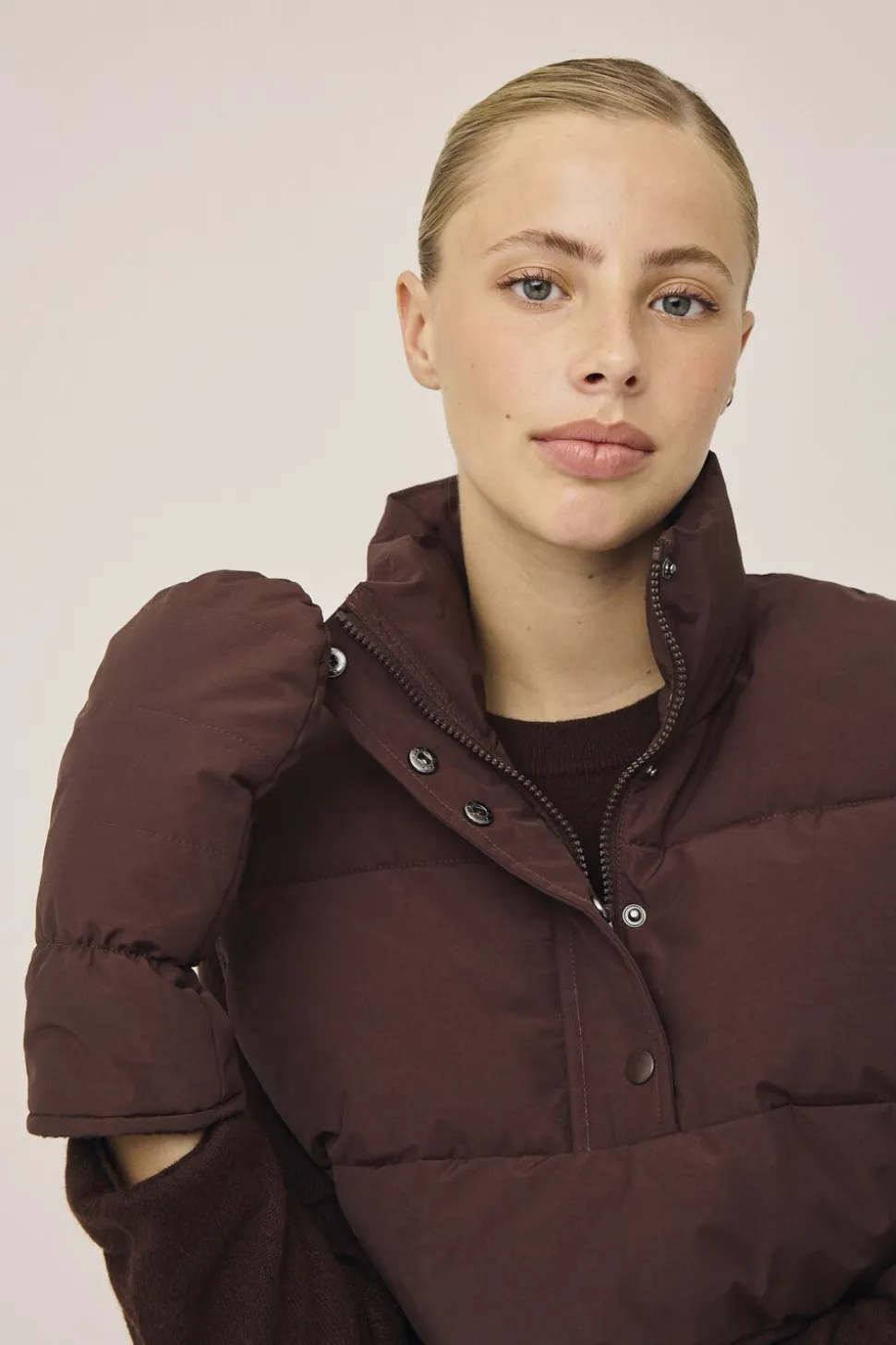 Vandtæt, vatteret halsedisse fra Magasin du Nord Collection i den lækreste kvalitet af 50% genanvendte fibre med GRS-certificering. Halsedissen er enkel i modellen med lynlåslukning og trykknapper på fronten samt bindebånd i siderne. En skøn halsedisse i en lækker kvalitet.