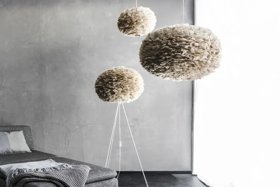Umage Eos er lavet af naturlige gåsefjer der gør hver eneste Eos lampe unik. Umage Eos giver et blødt lys og er en elegant og fortryllende lampe, selv når den er slukket. Umage Eos findes i 4 størrelser, der hver især komplimenterer ethvert rum.