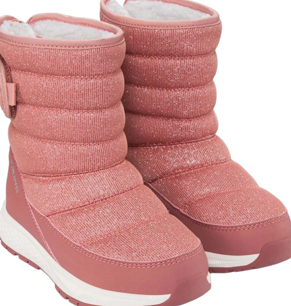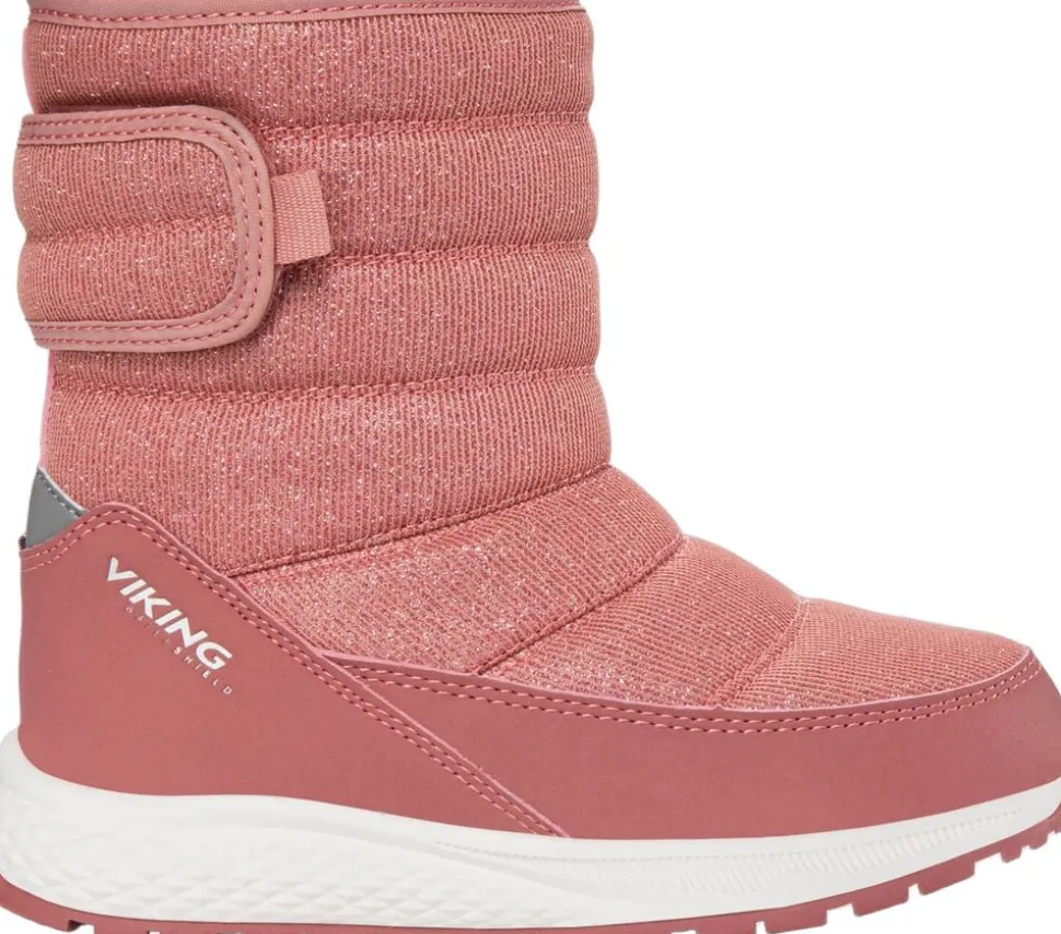 Gør dit barn klar til hverdagens eventyr med en støvle, der er både stilfuld og behagelig. Den iriserende overdel med glimmereffekt har en praktisk slip-on stil, der gør det nemt at få den af og på, og velcrolukningen bagpå holder den godt på plads. Vikings Watershield membran sørger for, at fødderne forbliver tørre under våde forhold, mens et lunt holder kulden væk. En let mellemsål i EVA dæmper hvert skridt på vejen, og en ydersål i gummi giver et godt greb.