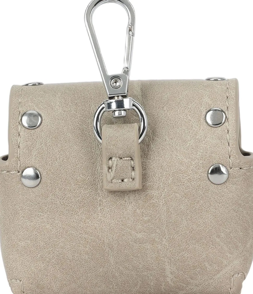 Mød Esme mini clip bag – hvor funktionalitet møder cool design. Fremstillet i slidstærkt, tekstureret vegansk læder med sølvfarvede nitter, er denne kompakte taske skabt til opbevaring af dine AirPods, earbuds, nøgler eller andre småting. Den sikre klaplukning holder dine ting på plads, mens den robuste metalklips gør det nemt at fastgøre den til din taske, bælte eller bukser.