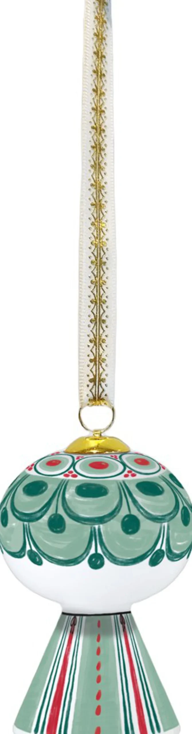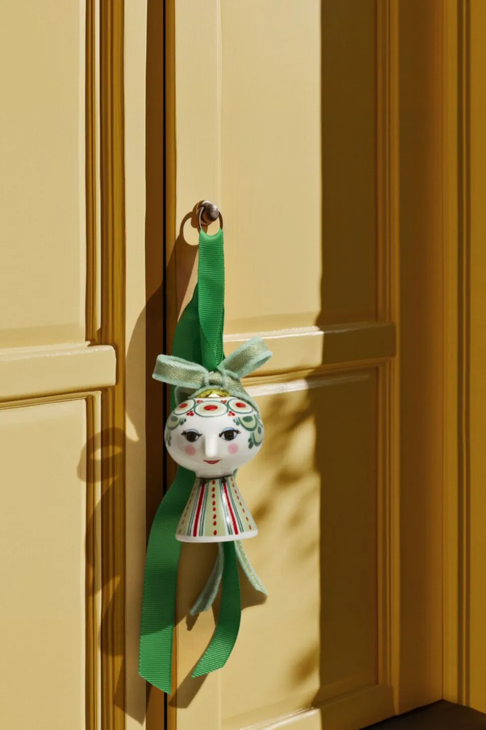 Udfold din farverige personlighed og skab plads til glæde med Bjørn Wiinblads Eva. Så snart du inviterer Eva indenfor, vil du med den populære serie med Bjørn Wiinblads gennemgående streg øjeblikkeligt skabe plads til glæde overalt i hjemmet. Gennem hele sit virke udforskede Bjørn Wiinblad farver, former og mønstre, og med den ikoniske Eva-figur som ophæng kan nemt og dekorativt du lade kreativiteten få frit spil overalt i boligen. Bjørn Wiinblad repræsenterer alt, hvad der er skørt, skævt, kreativt og vidunderligt. Og med dette smukke Eva-ophæng i overvejende grønne nuancer inspireret af kunst fra Bjørn Wiinblads legendariske designarkiv får du hurtigt, enkelt og dekorativt skabt et en stemning af glæde og kreativitet, der strømmer ud i ethvert hjørne i dit hjem. Ophænget måler 7,5 cm i højden og er lavet af blankglaseret porcelæn med farvet decal og er inspireret af Bjørn Wiinblads originale Eva-univers, hvor brede hoveder med blomsterdekorationer og en kegleformet krop dannede grundstenene. Ansigtet med de mandelformede øjne og den spidse næse er Wiinblads oprindelige streg, og det farverige kjolemønster er en nyfortolkning af Bjørn Wiinblads illustrationer fra arkiverne. Med sit glade smil, de blussende kinder og farverige dekorationer rummer Eva på alle måder essensen af Bjørn Wiinblad som person og kunstner. Der er noget larger than life over hendes selvsikre, poetiske og drømmende fremtoning, der uanset størrelse gør hende til et statement piece, der fanger øjet i indretningen. Hun pynter og skaber glæde på juletræet, i vinduet og på grene, hvor hun hængende i bånd med guldprint med original Bjørn Wiinblad-dekoration lyser op og gør livet mere farverigt præcis som Bjørn Wiinblad elskede det. Bjørn Wiinblad var en livsglad kunstner med en stor og farverig personlighed, der gik sine egne veje og ikke var bange for at drømme og tænke stort. Den sjæl mærkes også i Eva, der hviler i sig selv og inviterer os til at udtrykke vores egen stil og personlighed med fokus på kreative dekorationer. En ting er sikkert: Det bliver ikke kedeligt, når Eva flytter ind.