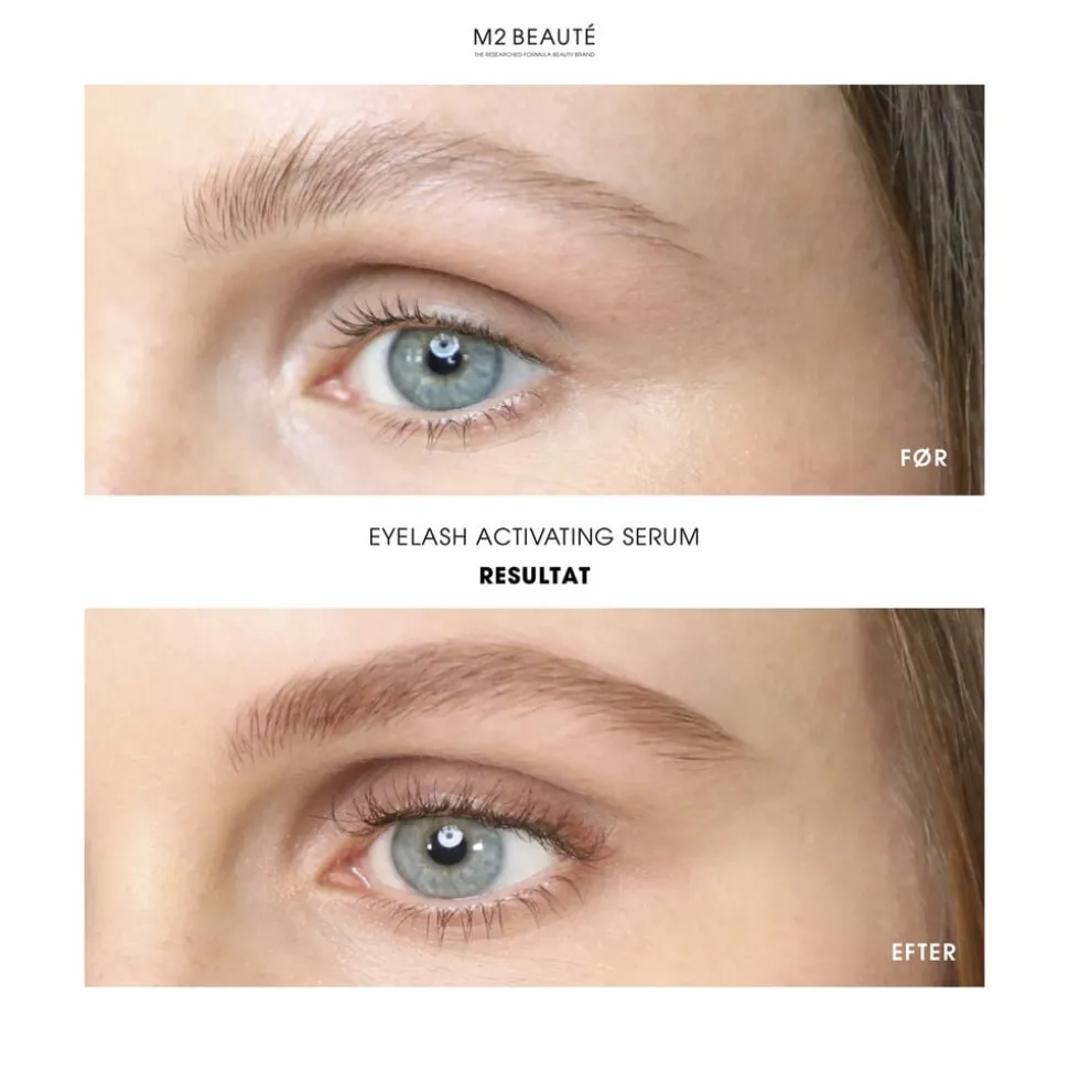 M2 Beautés Eyelash Activating Serum giver dig med garanti længere, fyldigere og mørkere øjenvipper. Det øger antallet af vippehår, forlænger deres vækstfase og øger farveintensiteten for at give dig et naturligt udseende med de øjenvipper, du altid har drømt om. Eyelash Activating Serum er M2 Beautés ’Booster Serum’, der giver dig mørke, udtryksfulde øjenvipper, som kan gøre mascara næsten overflødig. Det revolutionerende Eyelash Activating Serum fra M2 Beauté fremmer, med sit yderst effektive, innovative aktive ingredienskompleks, øjenvippernes vækst og fylde med gennemsnitligt 50%.