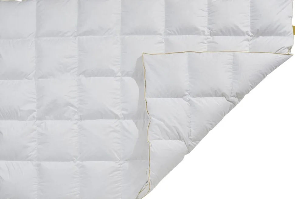 Quilts of Denmark® hylder FEJØ med en eksklusiv dyne- og pudeserie, der er fremstillet det fineste satin vævede bomuld med fyld af moskus dun den høje kvalitet er understreget med en gylden piping/kant. Sortimentet omfatter såvel en luksuspude, samt helårsdyner i alle standard størrelser