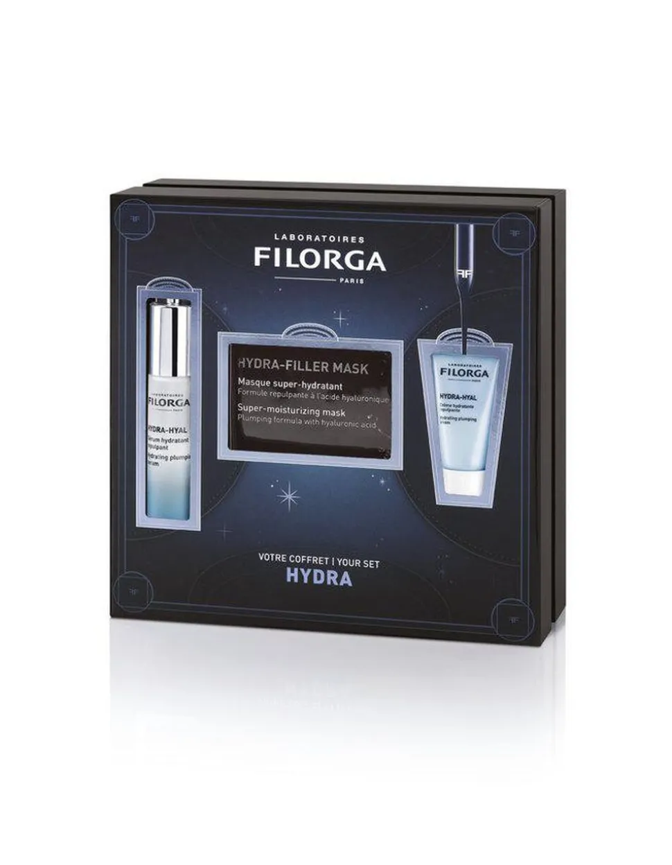 Hydra-Hyal Serum 30ml (Full Size), Hydra-Hyal Cream 15ml, Hydra-Filler Mask – Værdi 736 DKK
