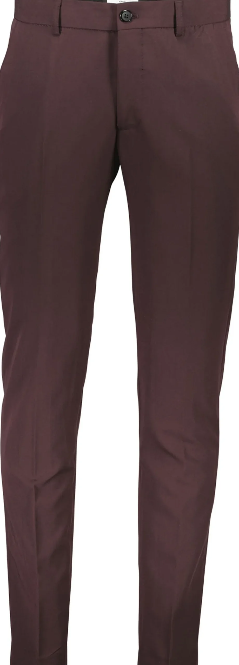 Bukserne er klassiske habitbukser, som lukkes med knap og skjult lynlås. Der er pressefolder, som gør looket ekstra stilfuldt, og bukserne har lommer i siden og paspolerede baglommer med knapper.