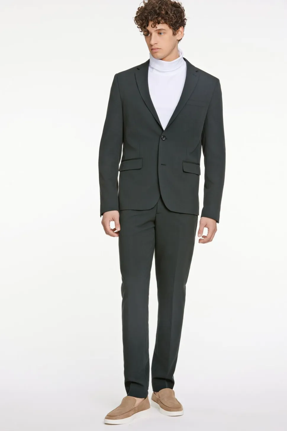 Bukserne er klassiske habitbukser, som lukkes med knap og skjult lynlås. Der er pressefolder, som gør looket ekstra stilfuldt, og bukserne har lommer i siden og paspolerede baglommer med knapper.