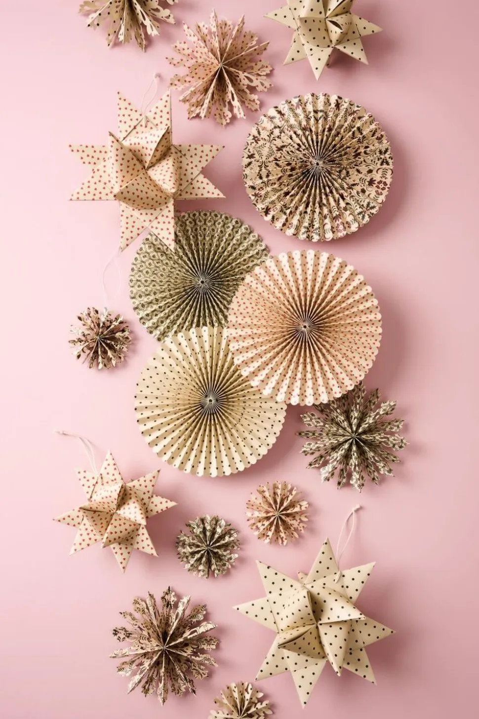 Flettet stjerne t/ophæng lille m/røde hjerter