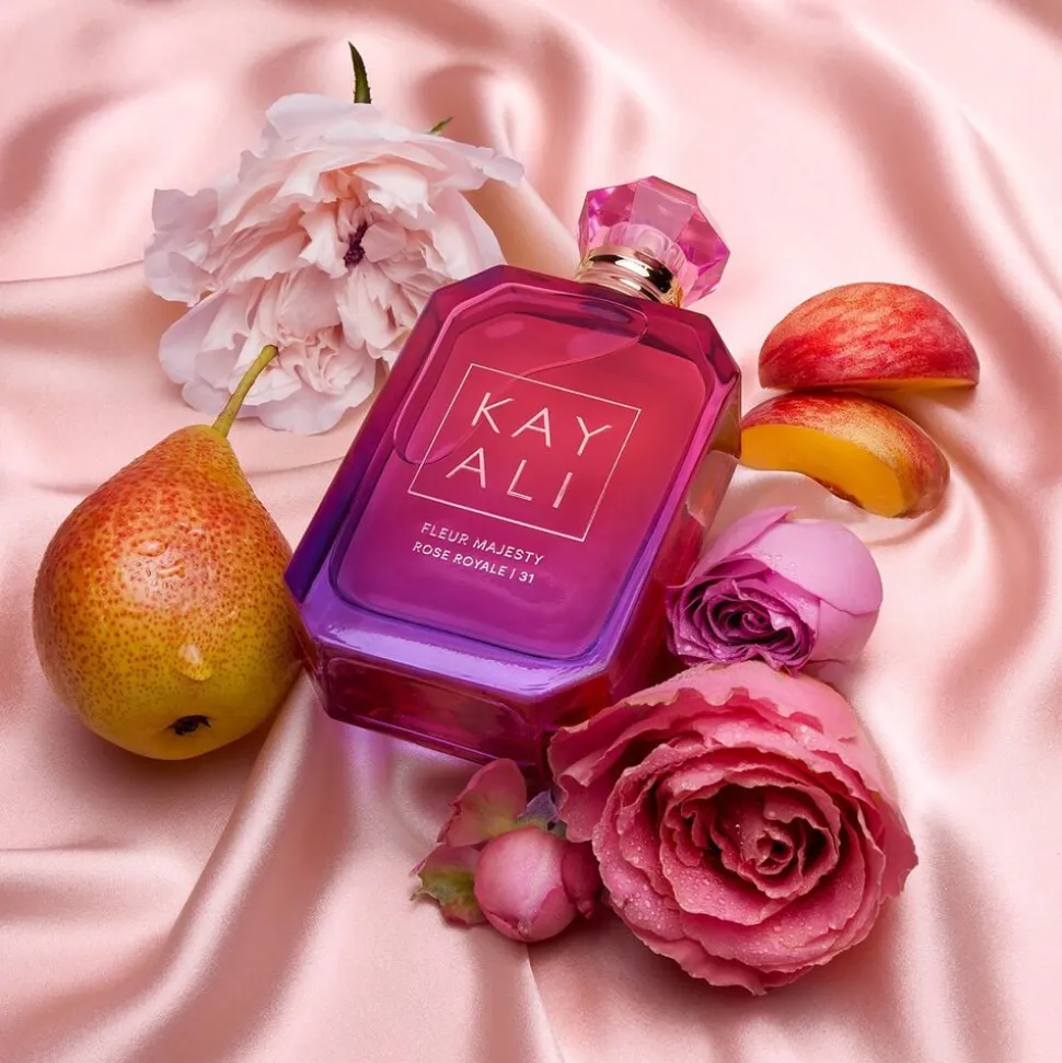 “Min inspiration til KAYALI har altid været at få folk til at føle sig rigtig godt tilpas, når de bærer vores dufte. Med Fleur Majesty Rose Royale | 31 ønskede jeg at skabe en varm blomsterduft, der både er stærk og blød – en duft, der føles ubesværet elegant, selvsikker og unik. For at bringe denne dufthistorie til live valgte jeg rosen som grundtone, da den ofte kaldes “blomsternes dronning” og præsenterer en romantisk og tidløs facet af duften. Vi tilføjede lækker grøn pære og sød fersken samt delikat lyserød pæon, violettræ og violet moskus for at skabe en sensuel og kraftfuld duft, der holder længe!” – Mona Kattan