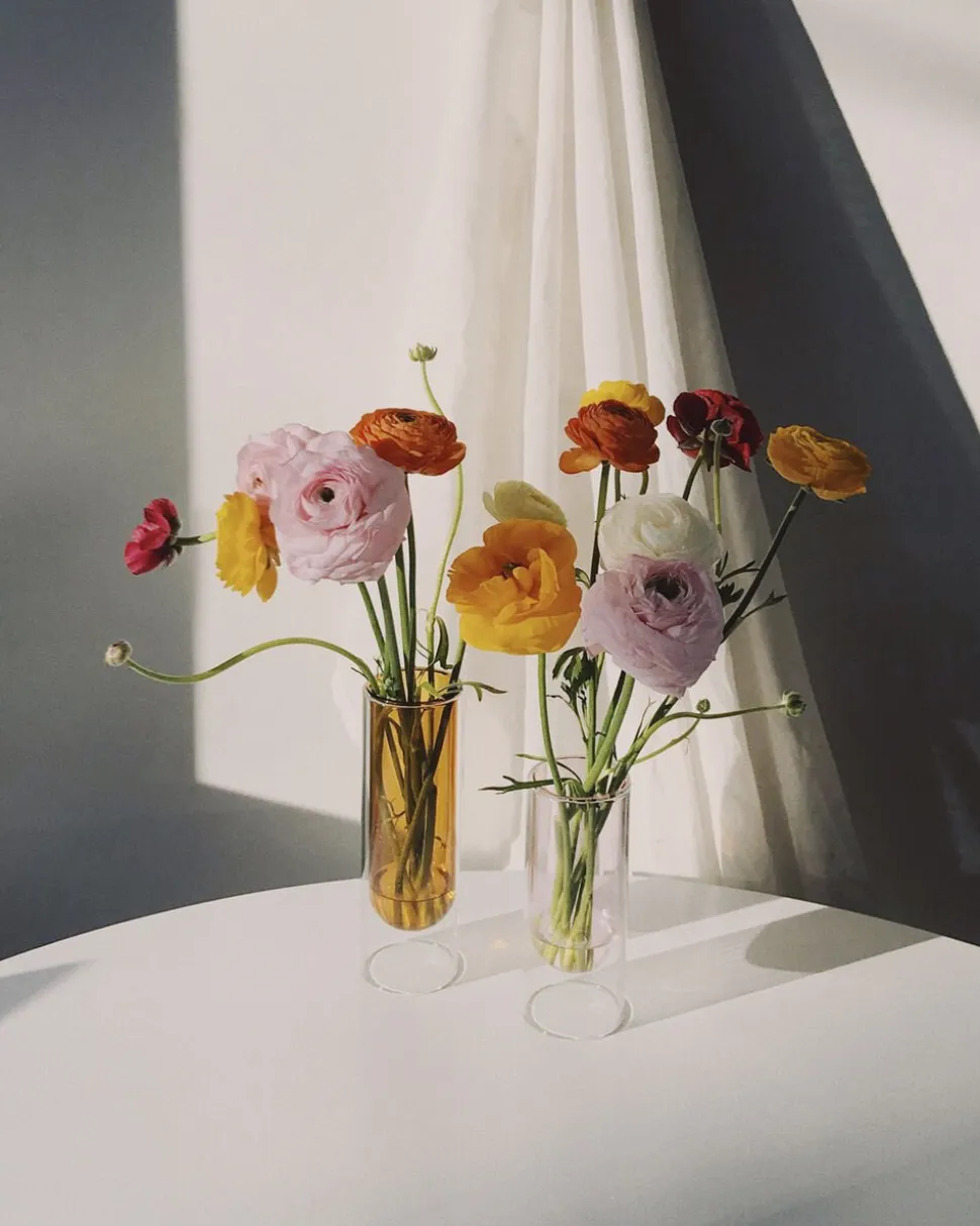 FLOWER TUBE kollektionen er en serie af glasvaser designet til en mindre buket eller et par enkelte stilke eller prøv med et par æblegrene eller kirsebærgrene, når foråret nærmer sig. De cylinderformede vaser fåes i flere størrelser og farver og er designet af arkitekt Mikkel Lang Mikkelsen.Glasvasen fåes her i en smuk gul farve og en højde på 20 cm. Vasen består af to dele – en farvet glasvase, som hviler i en transparent cylinder af glas. Udformningen giver vasen et skulpturelt og svævende udtryk og falder naturligt ind i den nordiske indretning.Vasen findes også med en højde på 16 cm og i flere forskellige farver så som rosa, blå og grøn. Vær opmærksom på, at vasens øverste glaskant er skrøbelig. Vi opfordrer derfor til at være ekstra forsigtig, når du tager vasen op af cylinderen. BRING NATUREN INDENFORNår haven står i fuldt flor og det bugner med blomster og buketter på udendørsmarkederne er det oplagt at bringe lidt af skønheden indenfor og lave en lille buket til glasvasen. Flower tube glasvaserne kan sagtens stå alene, men bliver kun endnu mere imponerende i en lille klynge med flere farver og størrelser. Leg med blomsternes farve og størrelser og tilføj indretningen et lille farverigt stilleben.I årets første måneder, når vi higer efter lys og forår kan man bruge vasen med små blomsterløg som eksempelvis hyacinter, krokus, påskelinjer og tulipanløg. Løgene vokser hurtigt indendøre, men vil støtte sig til den cylinderformede vase og stå smukt og dekorativt i et par uger uden den store pasning.Når vi er udenfor sæson, kan man pynte vasen med et par tørrede stilke og en håndlavet papirblomst fra vores blomster kollektioner- buketten kræver ingen pasning, men bringer farve og følelsen af sommer og lyse dage ind i indretningen.MUNDBLÆSTE GLASVASER I ET VÆLD AF SMUKKE FARVERVaserne er håndlavede i borisilikatglas, som er en særlig stærk glastyper, der kan modstå høje temperaturer og desuden er ridsefast. Vasen vil derfor beholde sin smukke gule farve over tid og med almindelig rengøring med varmt vand og sæbe vil holde sig pæn og blank. Brug evt lidt eddike, hvis der er kommet kalkrender. Se også vores kollektion af store vaser Bubble Tubes, der findes i flere farver og er smukke sammen med Flower Tube kollektionen. Vores objekter er tegnet således, at de altid kan mixes på kryds og tværs. MÅL, VÆGT OG FARVEÅBNING: Ø65 mmHØJDE: H200 mmVÆGT: inkl. emballage 0,460 kgFARVE: YellowStudio About er et dansk designstudio. Alle produkter er designet af arkitekt Mikkel Lang Mikkelsen