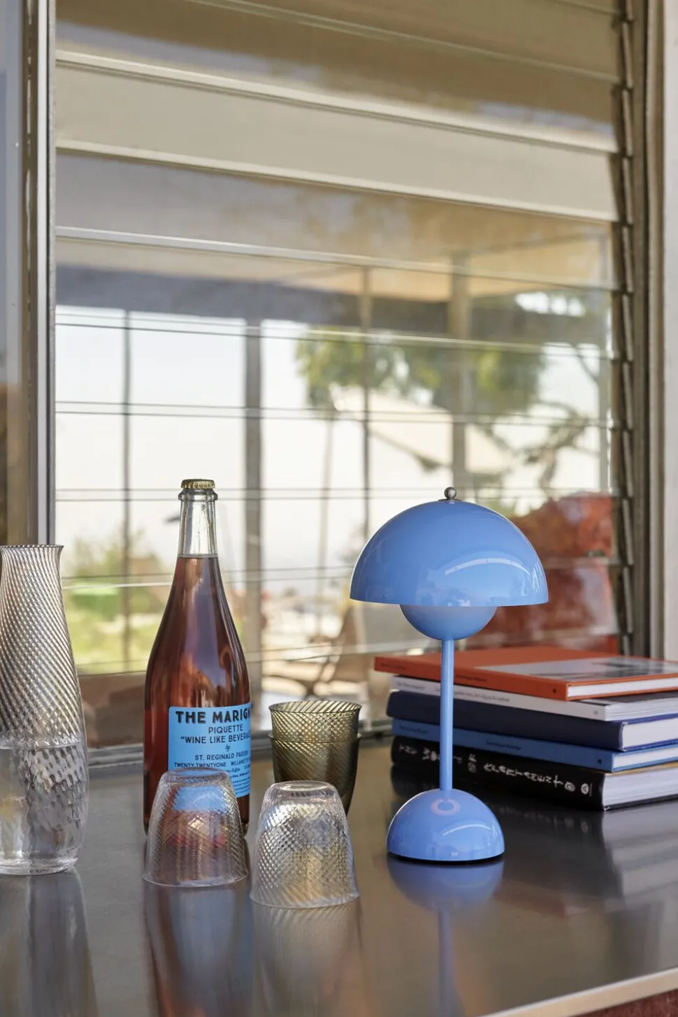 Flowerpot er designet af Verner Panton, som fandt inspiration til lampeserien i 60’ernes og 70’ernes Flower Power revolution. Flowerpot VP9 er en lampe du kan tage med dig, og er derfor ikke en helt almindelig bordlampe. Få lys hvor du har brug for det, også steder hvor der ikke er stikkontakt.