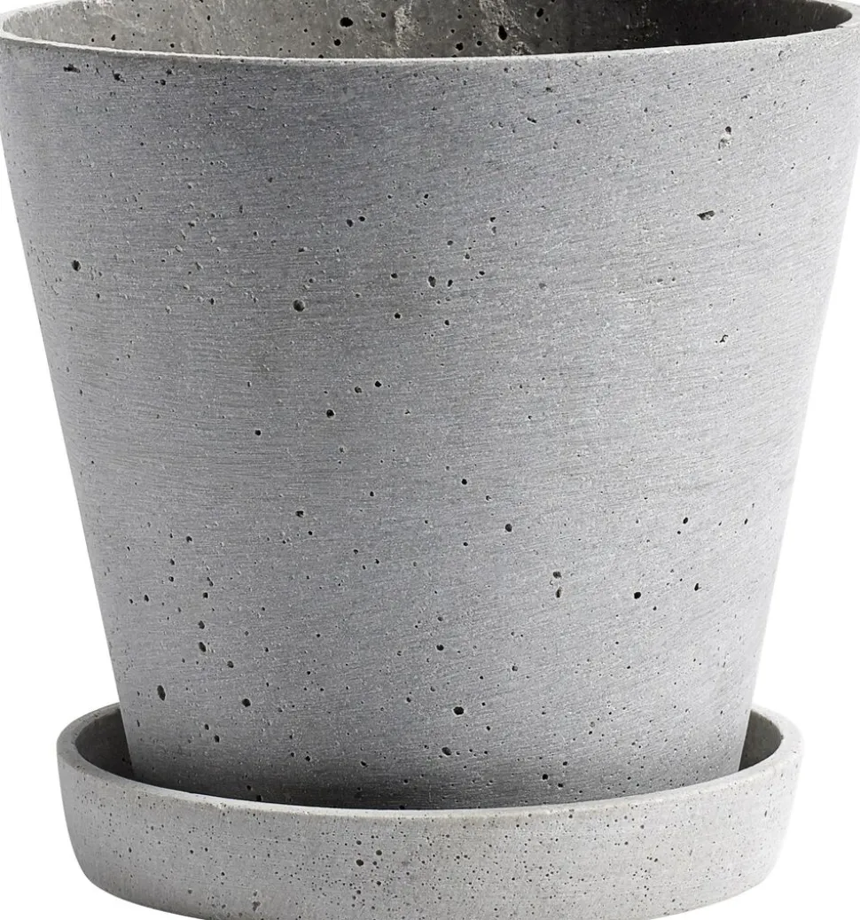 Blomsterpotte med Saucer-Large-Grå