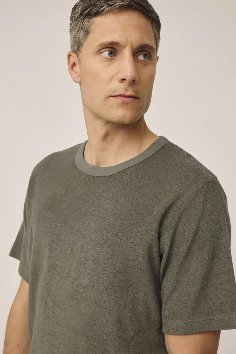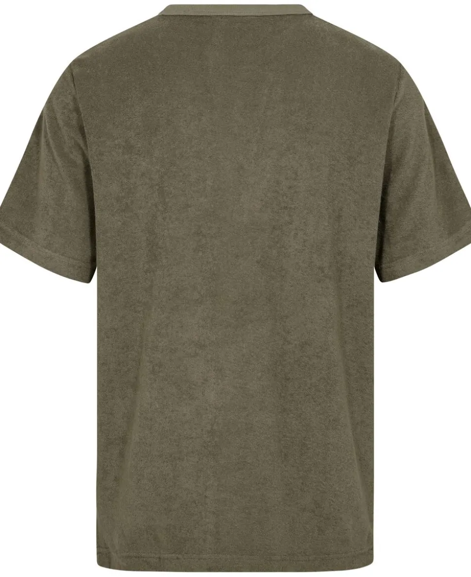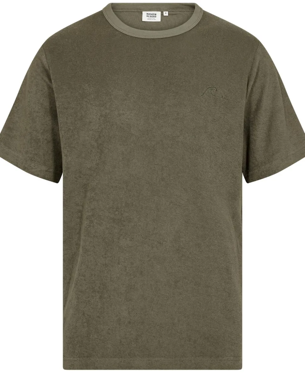T-shirt fra Magasin du Nord Collection i den blødeste kvalitet af 100% økologisk bomuldsfrotté med GOTS-certificering. T-shirten er enkel i modellen med korte ærmer, rib i den runde halsudskæring samt en casual, løs pasform. En skøn T-shirt i en lækker kvalitet.