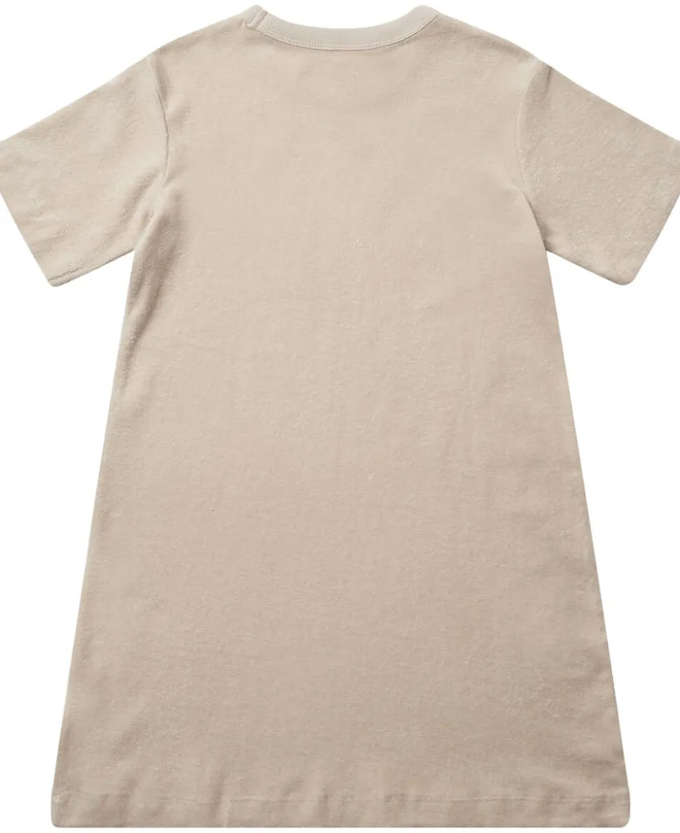 Kjole fra Magasin du Nord Collection i den blødeste kvalitet af 100% økologisk bomuldsfrotté med GOTS-certificering. Kjolen er enkel i modellen med korte ærmer, rib i den runde halsudskæring samt en casual, løs pasform. En skøn kjole i en lækker kvalitet.