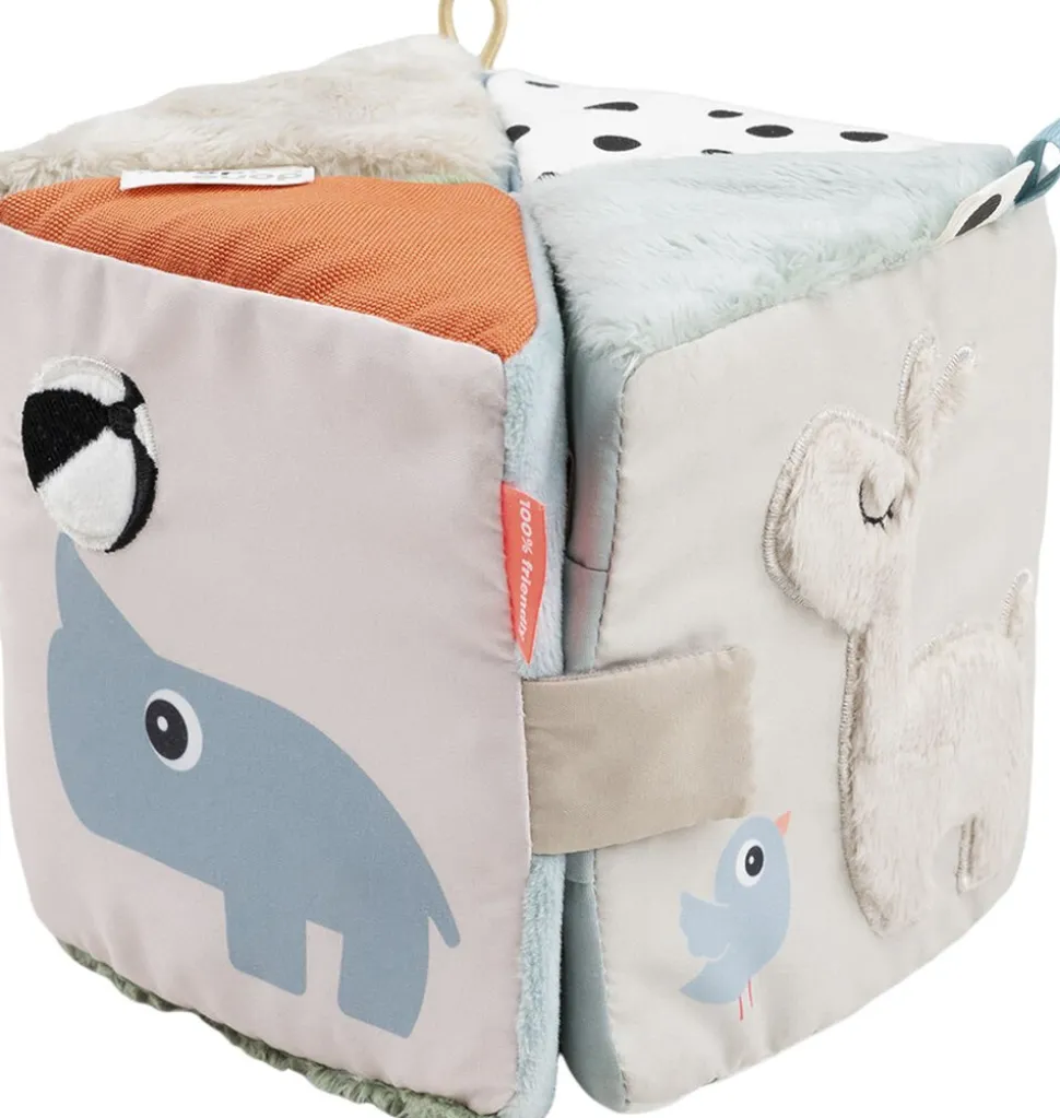 Luk med velcro og brug den som en terning til at motivere dit barn til at kravle, eller hvis du vil tage den med