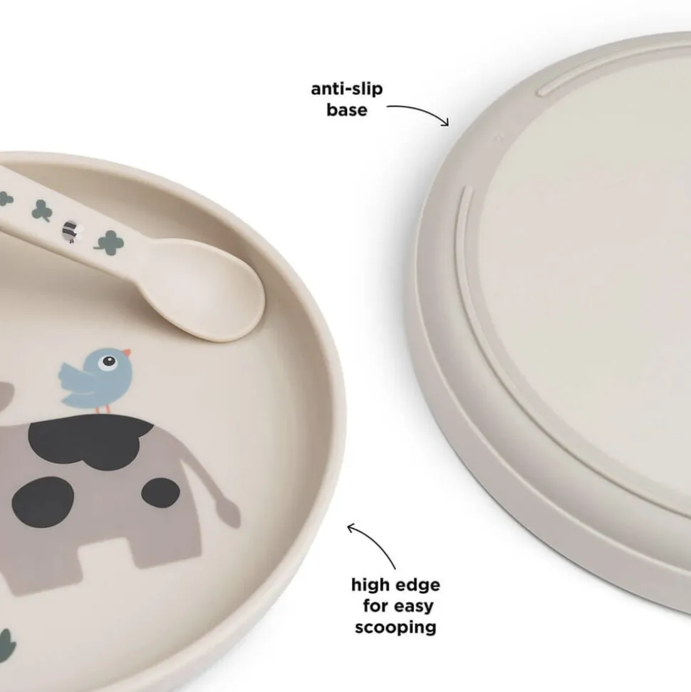 En praktisk antiskrid-base sikrer, at tallerkenen bliver på sin plads under måltidet