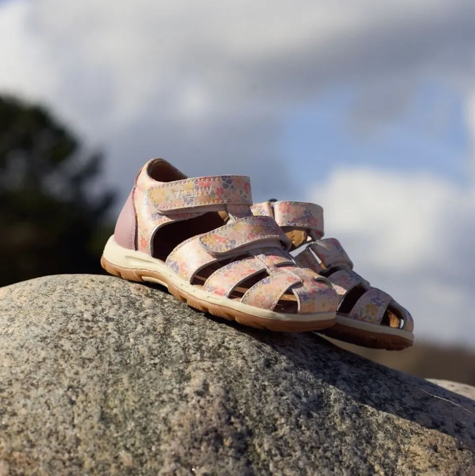 Let og fleksibel trykt sandal med to praktiske velcro lukninger til småbørn. – Lukket tå og hæl – Dobbelt velcro for justerbarhed – Fiskerstil til beskyttelse – LWG Certificeret trykt læder – Krom- og metal fri læderforing – Holdbar TPR-gummisål Frei sandalen har to justerbare velcro-stropper hen over foden, der gør dem lette at træde i og giver dem justerbarhed for den perfekte pasform. Den har en lukket tå for at tilbyde ekstra beskyttelse og en lukket hæl for ekstra stabilitet. Denne sandal er lavet i naturligt læder garvet i LWG-garverier. For at sikre, at ingen giftige materialer rører huden, har vi foret vores sandaler med krom- og metal fri læderforing. Indersålerne er lavet med latex og dækket med krom- og metal fri garvet læder. Latex er et naturligt produkt, der giver mere bounce for mere behagelige trin. Ydersålen er lavet af gummi, som er meget let og tilbyder god trækkraft og fleksibilitet. Sandalerne er normale i størrelsen. Anbefalet tilvækst: 1-1,5 cm Indvendig måling Størrelse 19 = 12,5 cm Størrelse 20 = 13,1 cm Størrelse 21 = 13,8 cm Størrelse 22 = 14,4 cm Størrelse 23 = 15,1 cm Størrelse 24 = 15,8 cm Størrelse 25 = 16,4 cm Størrelse 26 = 17,1 cm Størrelse 27 = 17,7 cm Størrelse 28 = 18,4 cm Størrelse 29 = 19,1 cm Størrelse 30 = 19,4 cm Størrelse 31 = 20,1 cm Størrelse 32 = 20,7 cm Størrelse 33 = 21,4 cm Størrelse 34 = 22,0 cm Størrelse 35 = 22,7 cm — Ydermateriale: Naturligt læder fra LWG-garverier Foring: Krom- og metal fri garvet læder Indlægssål: Blød latex indlægssål dækket med krom- og metal fri garvet læder Ydersål: Gummi