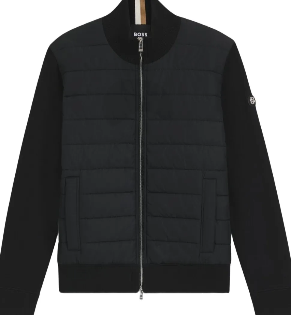 En varmende BOSS herretøj-jakke, ideel til lagdeling. Fremstillet i en blød uld-bomuldsblanding med en kontrasterende polstret front. Hyggelige ribstrikkanter. Dette produkt indeholder mindst 60 % bedre råmaterialer. Dette produkt er delvist fremstillet af økologisk bomuld. Vores økologiske standarder tillader ikke brug af syntetisk gødning, pesticider eller genetisk modificerede frø.