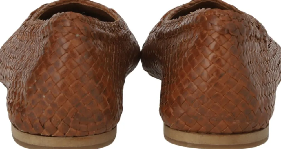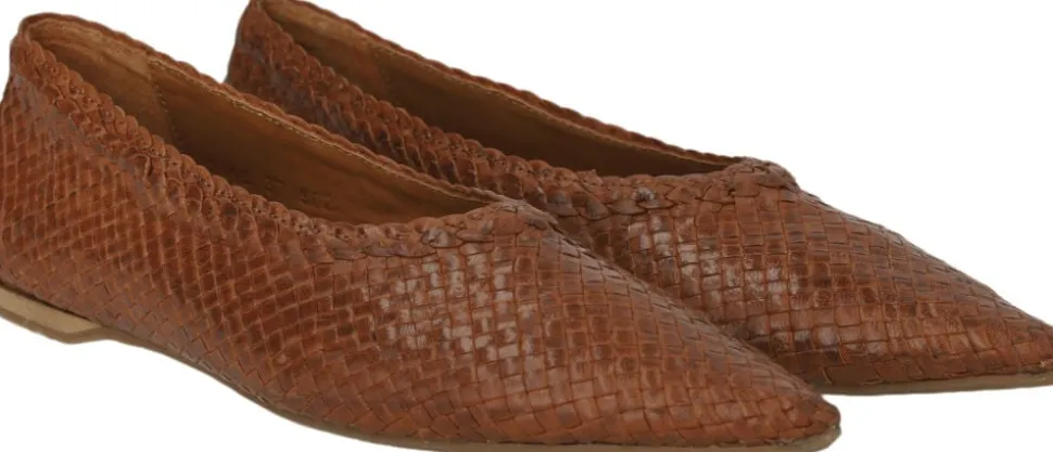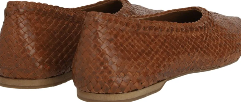 Den øverste del af skoen er udformet i naturligt vegetabilsk garvet læder og er håndvævet i Indien, hvilket gør hvert eneste par unikt. Farve og mønster kan variere. Behandl dem med omhu.