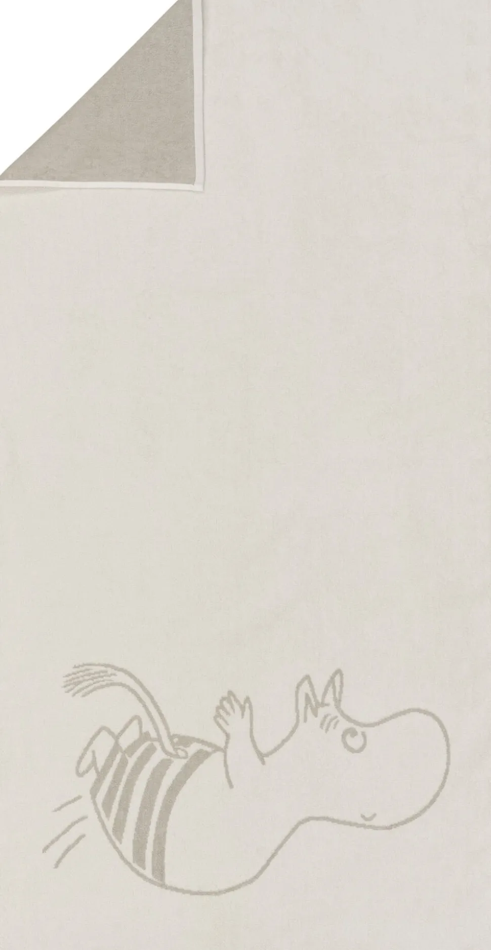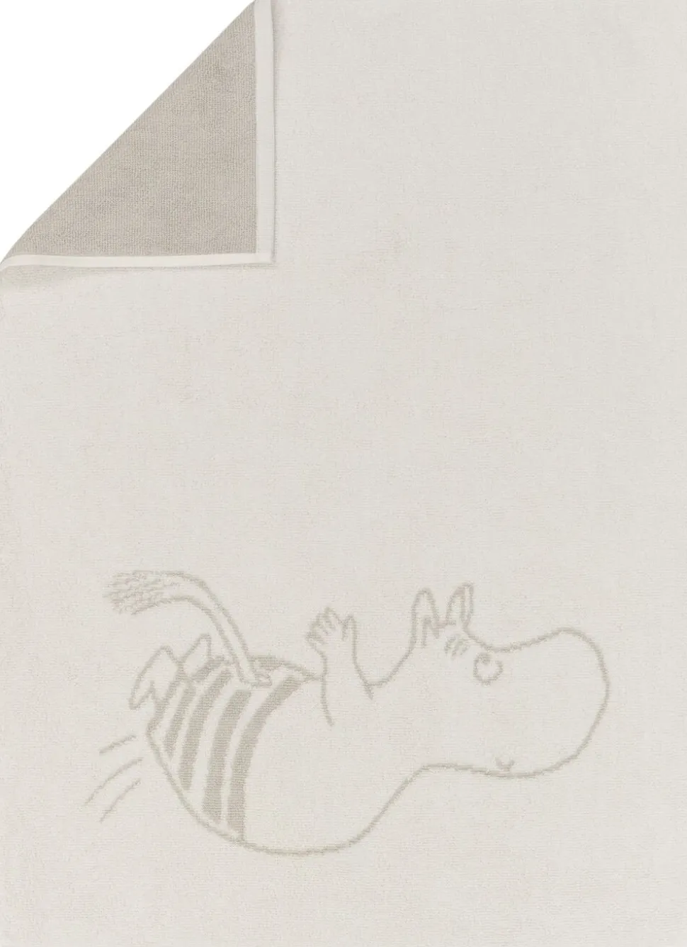 Svøb dig ind i den bløde hygge i Mumitroldenes badehåndklæde. Mumitrolden er flyttet til en isoleret ø med sin familie. Sammen med Snorkfrøken tilbringer de deres dage med at lave ‘stenmarkører’ af planker, de finder i havet. De kaster net ud for at fange noget fisk, men tiltrækker hovedsageligt tang.