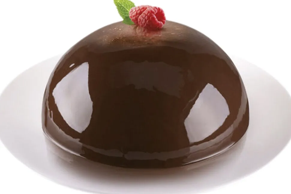 Stor halvkugleform i silikone på 18 cm. Formen er konstrueret med så den holder formen. Tåler maskinopvask.