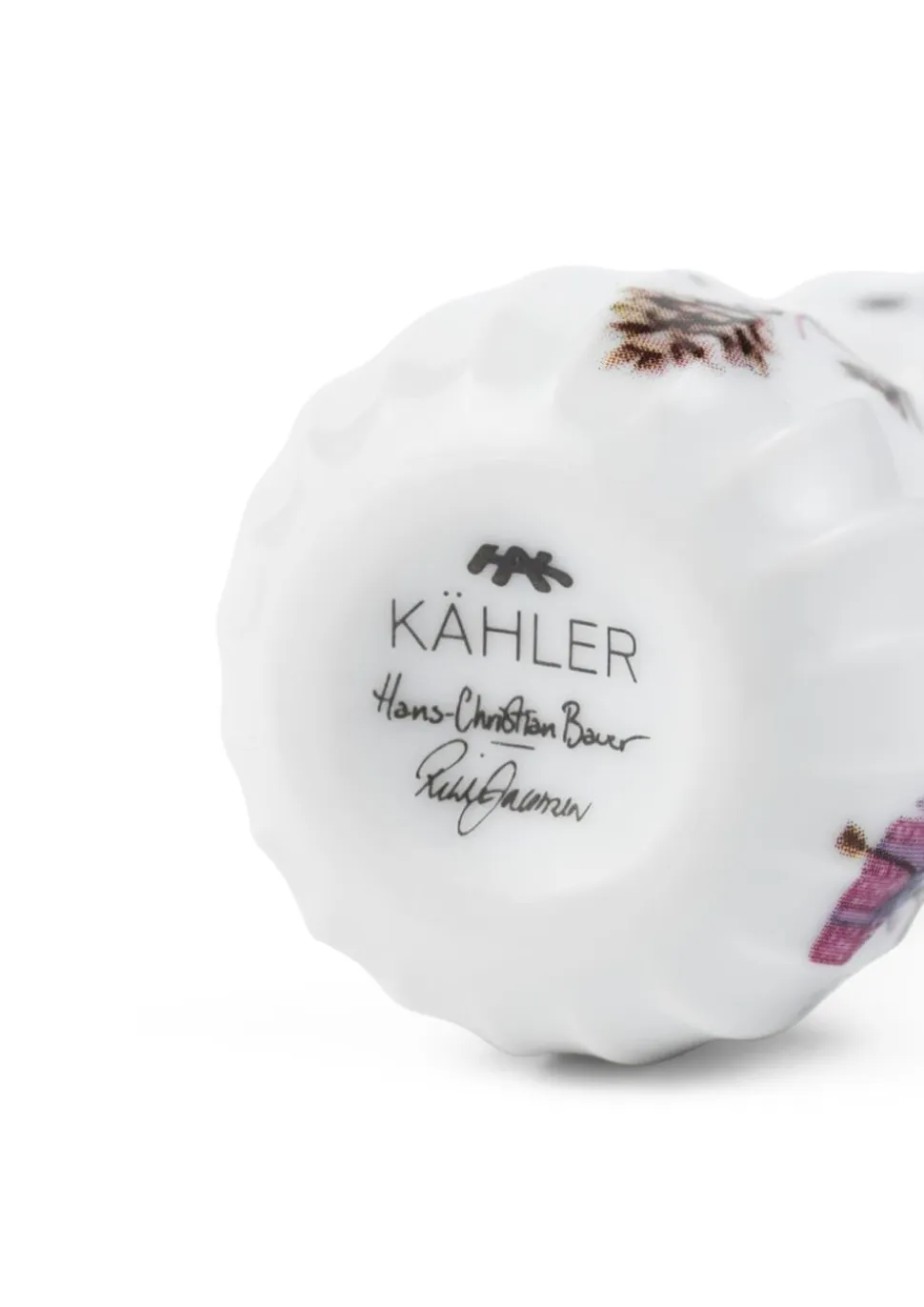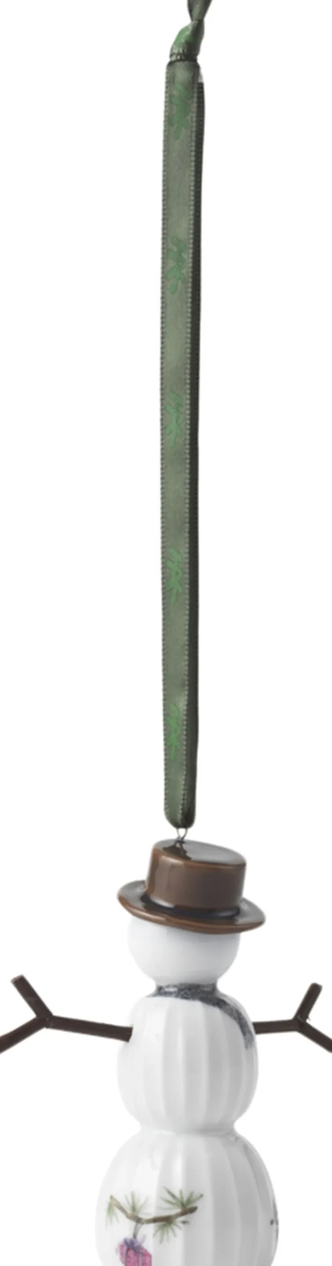 Juletraditioner og håndværkstraditioner i skøn forening. Med familien af snemænd fra Kählers juleserie Hammershøi Christmas bringer du enkelt og autentisk julestemningen ind i boligen med glade smil og hyggelige julemotiver, der matcher seriens øvrige dele og fuldender julehyggen, samtidig med at du kan nyde nostalgien i Kählers håndlavede designtraditioner. Gå en tur i haven, parken eller skoven og find jeres egne små kviste, der kan bruges som arme til seriens søde figurer. Måske som en ny, hyggelig juletradition den 1. december. På den måde bliver snemændene endnu mere personlige og betydningsfulde. Vær opmærksom på at de medfølgende arme til både den stående og hængende familie af snemænd udelukkende er vedlagt som inspiration til, hvordan du kan personliggøre dine Kähler-snemænd i din helt egen DIY-stil. Snemanden har selvfølgelig en høj hat på, som vi forbinder det med den klassiske snemand. Han måler 9,5 cm i højden og 4 cm i diameter og er udformet i bløde linjer med Hammershøi-seriens ikoniske riller, der kendetegner Hans-Christian Bauers stel og bordpynt. Denne model er den hængende udgave af Snemanden, men du kan også få ham stående. Så der er frit valg. Lad hele familien pynte på juletræet eller på smukke grene i en flot vase eller skab dit eget snelandskab i vinduet, på hylden eller på julebordet. Kählers snemandsfamilie består af Snemanden, Snekonen, Snedrengen og Snepigen, der alle på forskellig vis dekoreret er med motiver fra Hammershøi Christmas-serien malet i akvarel af Rikke Jacobsen og overført til det snehvide porcelæn. Motiverne er klassiske julemotiver som julehjerter, kræmmerhuse og gaver i en autentisk, hyggelig og håndmalet stil, som man slet ikke kan undgå at komme i den helt rigtige julestemning af.