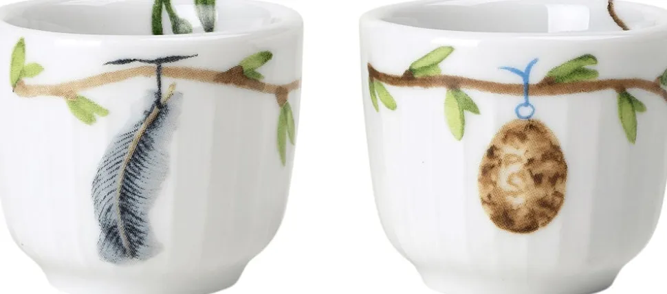 Nu får Hammershøi universet får en dekoreret nyhed, og vi kan nyde forårets blødkogte æg i Kählers Hammershøi Spring æggebæger. Seriens karakteristiske Hammershøi-riller kendetegner serien på tværs af farve, form og materiale, og bruges både til hverdag og fest. Her til foråret er æggebægerne dekoreret med nyudsprungne grene, og fine forårsblomster. Dekorationen er håndmalet af Rikke Jacobsen og overført til porcelænet. Æggebægerne er pakket i æske med 2 stk. æggebægre.