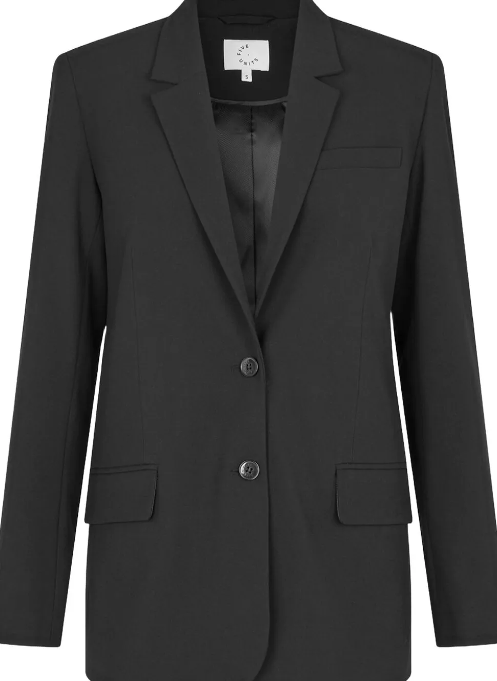Blazerjakke fra Five Units i en lækker kvalitet af genanvendte fibre. Jakken er klassisk i modellen med lange ærmer, knaplukning, frontlommer, en slids bagpå samt V-udskæring med revers. En skøn blazerjakke i en lækker kvalitet.
