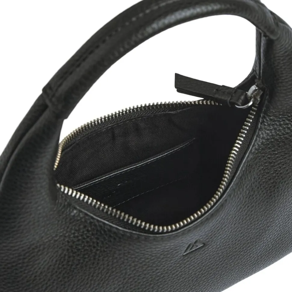 Hayma Handbag i Grain fra Markberg er en cool og smart håndtaske, der er produceret i 100% blødt kalveskind. Tasken har en cool rundlig shape, perfekt til festlige begivenheder og den oplagte add-on til dit outfit. Tasken har ét rum, med plads til de vigtigste ting på farten og så kan den stå. Tasken lukkes med lynlås. Taskens for er i 100% bomuld og målene på tasken er 22 cm x 24 cm x 7 cm.