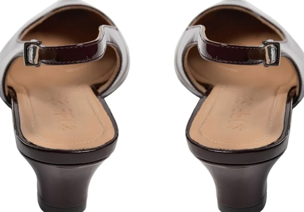Slingbacks” Sko med spids tå og hæl. Med justerbar spændestrop ved anklen. Lavet af 100 % læder
