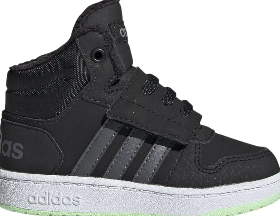 Giv dine børn stil og komfort med Adidas Hoops 2. 0 Mid Sneakers. Disse sneakers er designet til at imødekomme de yngstes behov for både stil og komfort. Den bløde og behagelige polstring sikrer komfort hele dagen, mens det høje skåret og de velcro-lukninger giver nem på- og afklædning. Med det sporty design og de karakteristiske Adidas-detaljer får du autentisk Adidas-stil til dine børn.