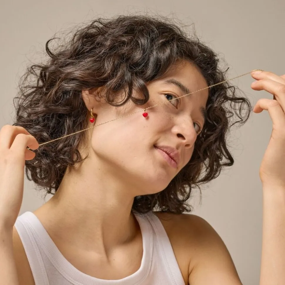 Bemærk- Prisen er pr. par Om smykket- Amore hoops fra ENAMEL Copenhagen er et par cool, chunky hoops med et fyldigt hjertevedhæng i forskellige farver. Amore betyder kærlighed på italiensk, og det må man sige disse skønne øreringe emmer af. De er kærlighedsfyldte på en cool og legende måde, men hvis du en dag alligevel gerne vil nedtone looket lidt, så kan den chunky hoop selvfølgelig også bruges uden vedhæng, ligesom de fleste andre hoops fra ENAMEL Copenhagen.