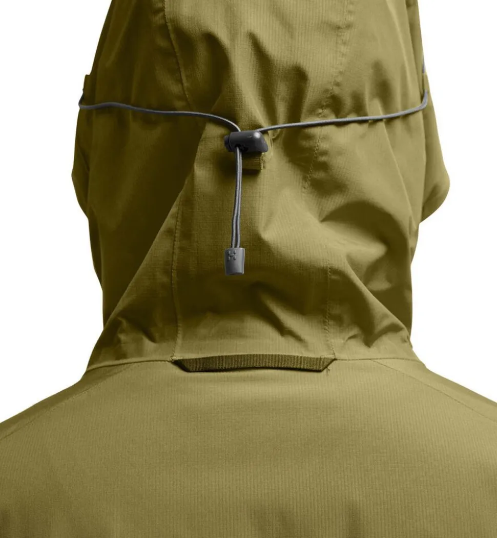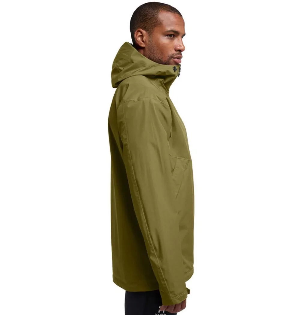 Haglöfs Husk Regnjakke er den ideelle jakke til aktive, der kræver pålidelig beskyttelse mod regn og vind uden at gå på kompromis med komfort og pasform. Med et højt vandsøjletryk på 15. 000 mm og åndbarhed på 10. 000 g/m²/24t holder den dig tør og tempereret under alle forhold. Jakken er lavet i 100 % genanvendt polyester med tapede sømme og justerbar hætte, talje og velcrolukning ved håndleddene for optimal tilpasning. De praktiske lynlåslommer sikrer sikker opbevaring, mens det lette, ripstop-væv sikrer slidstyrke og bevægelsesfrihed. Perfekt til både træning og hverdagsbrug i det danske vejr.