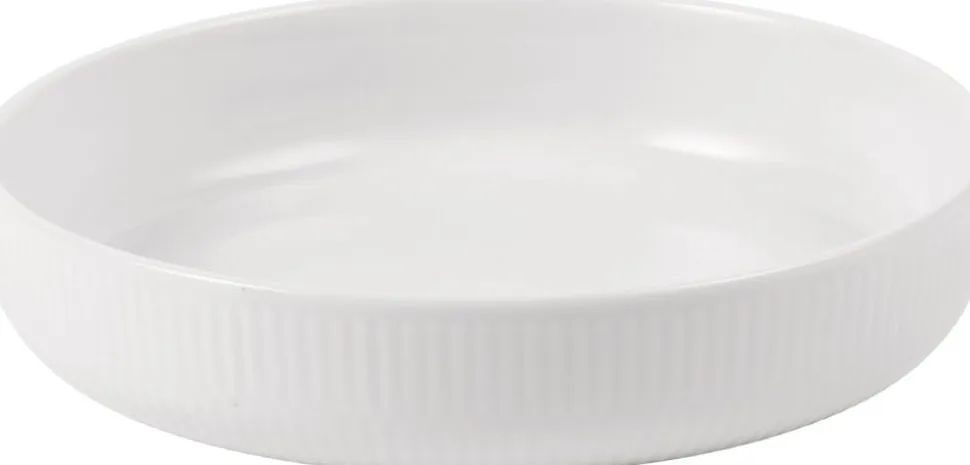Denne mindre version af Hvid Riflet ovnfast fad er på én gang et smukt og praktisk stykke porcelænshåndværk. Størrelsen er oplagt til enkelte serveringer eller mindre kager eller tærter, og fadets enkle design er en smuk tilføjelse til ethvert middagsbord.