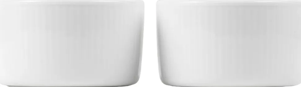 Imponér dine middagsgæster med en klassisk soufflé serveret i klassisk Hvid Riflet. Sættet med to Hvid Riflet souffléskåle er sikre favoritter til middagsselskaber eller til servering af nødder, snacks eller en sød dessert som chokoladefondant.